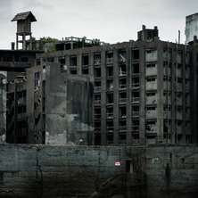 Blížíme se k ostrovu. Jako by byl celý z betonu. Obehnaný vysokou ochranou zdí, za ní hradba řítících se budov, černé díry místo oken – rezidenční bloky, které při tajfunech kryly důlní provozy. „Ještě před rokem byla tahle budova celá. Sice zchátralá, ale vypadala v pořádku,“ ukazuje průvodce na padající ruinu. Jen obvodové zdi, z podlah je hromada suti v přízemí.