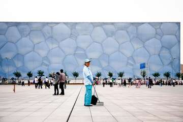 Teď, rok poté se na něj jdu podívat ve skutečnosti. Při pohledu zblízka Ptačí hnízdo už tak dech beroucí není. To, co na fotkách a v televizi působilo lehce, až křehce, je – celkem pochopitelně – zatraceně masivní ocelová konstrukce. A skvělý lapač prachu, kterého poletuje v Pekingu požehnaně. Je to sice teprve rok od Olympiády, ale Hnízdo začíná vypadat neudržovaně. Naproti Hnízdu stojí druhý z oslavovaných stadionů. Vodní kostka. Nenápadně přikrytá lehce potrhaným igelitem, povlávajícím ve větru. Aby se neušpinila. Ale možná je vše v pořádku. Protože Peking je zrovna takový. Monumentální propaganda. Na povrchu. Jako ten jejich kapitalismus.
